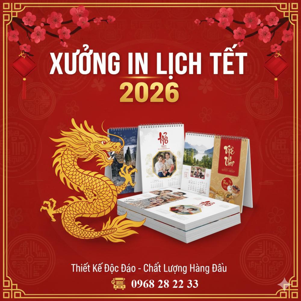 Dịch vụ thiết kế in lịch tết chuyên nghiệp như lịch treo tường, lịch để bàn, lịch bloc,... chúng tôi nhận in lịch tết theo yêu cầu, đội ngũ thiết kế lịch tết nhiều năm kinh nghiệm, chúng tôi có nhận in lịch tết số lượng ít, hãy liên hệ với chúng tôi để được tư vấn miễn phí.